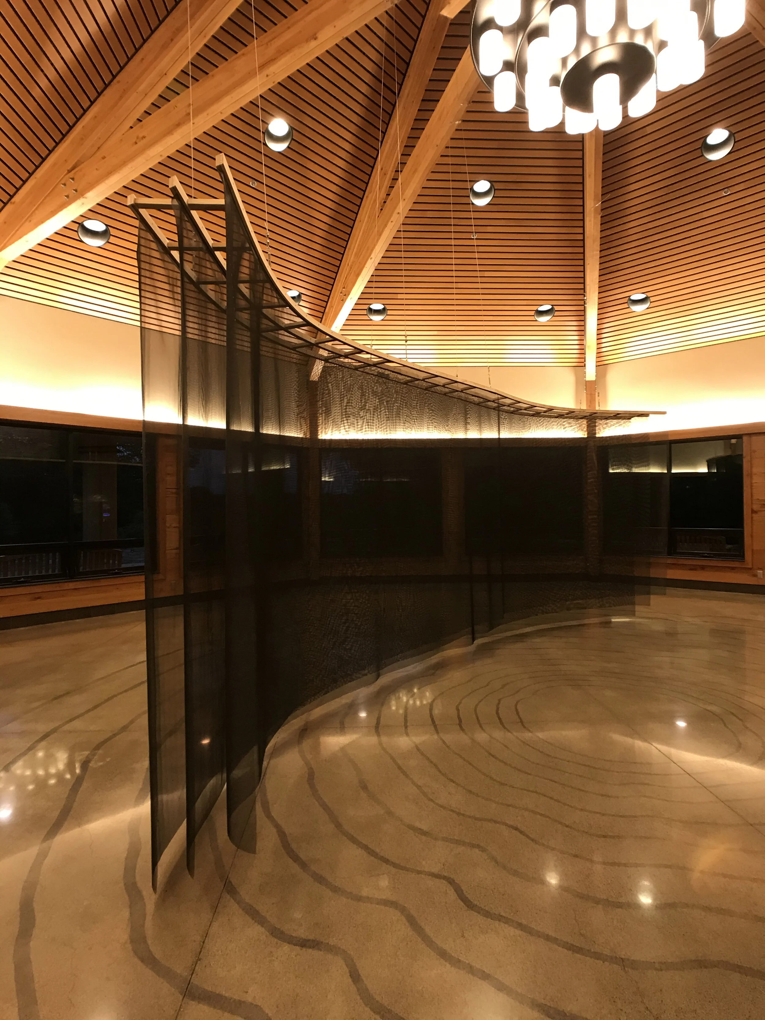 Images: Windshield (No. 4 - Silverwood Park); 2019; fiberglass screen, laminated pine, and hardware; approx. 8’ x 22’ x 4’.